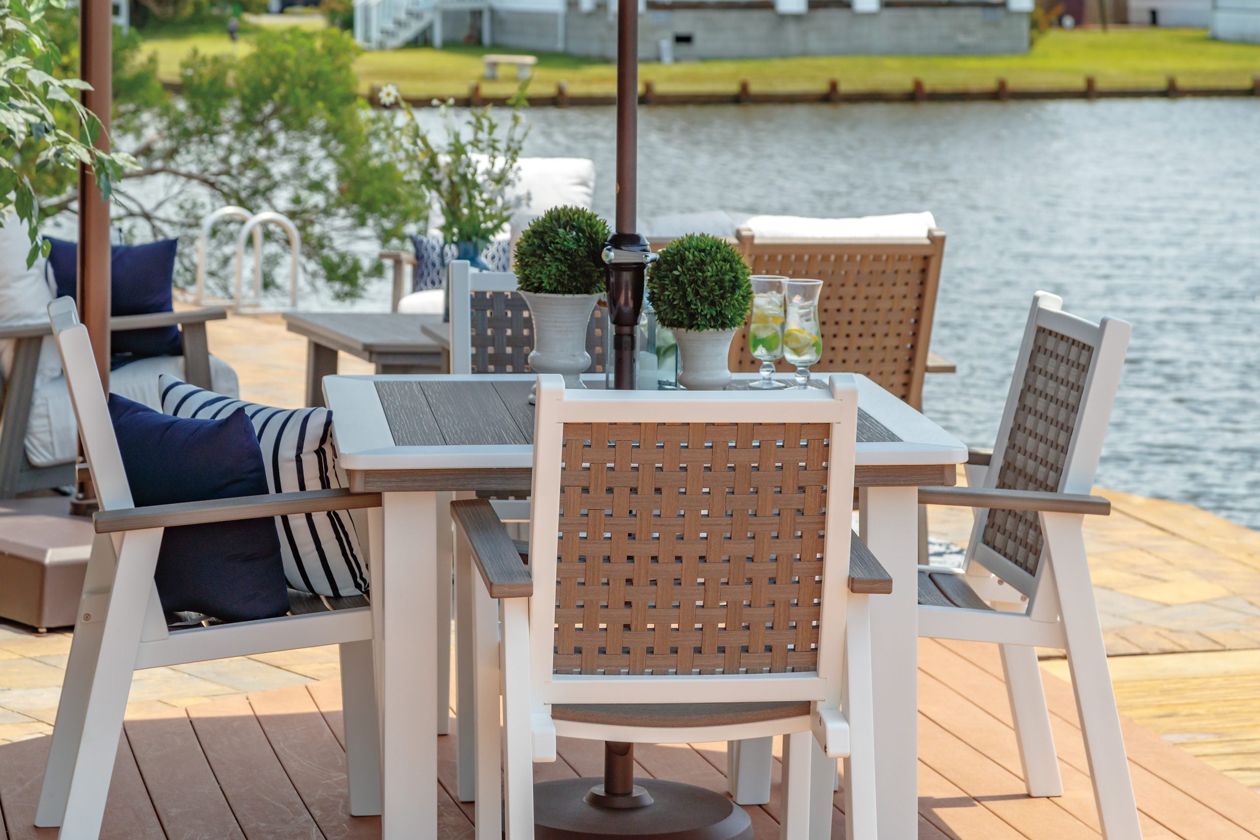 Cape May Wicker features the largest showroom of patio furniture by NorthCape, Casual Comfort and others. We also sell outdoor rugs, throw pillows, and cushions in Sunbrella fabric.